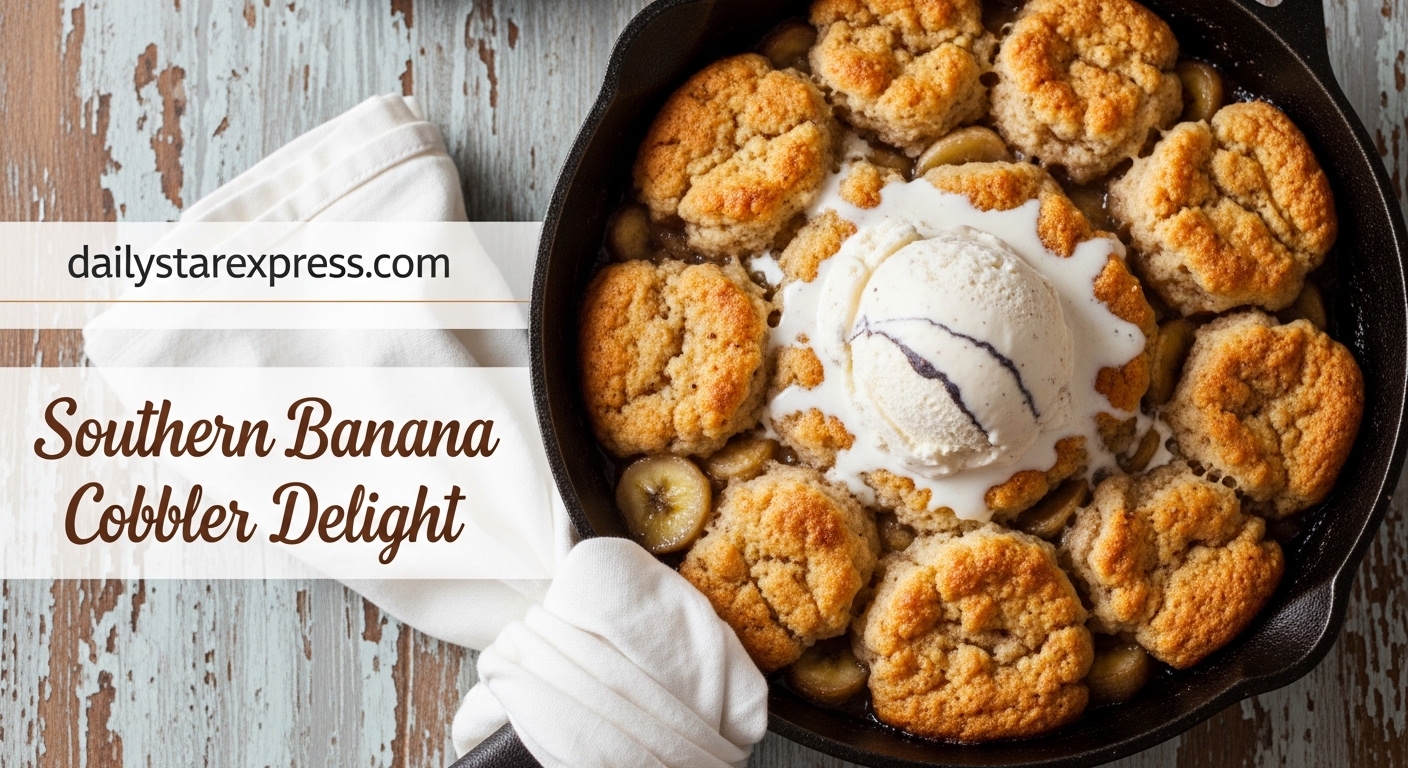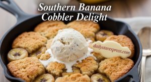 This Southern banana cobbler features ripe banana slices nestled in a sweet, buttery batter and topped with a golden oat-pecan crumble. The layered filling bakes until puffy and set while the generous crumb topping turns crisp and fragrant in the oven. Each spoonful brings together gooey fruit, toasty pecans, and a softly caramelized crunch, making it perfect for cozy gatherings or a comforting treat. Serve warm with a scoop of vanilla ice cream and extra fresh banana for classic Southern comfort on any occasion.